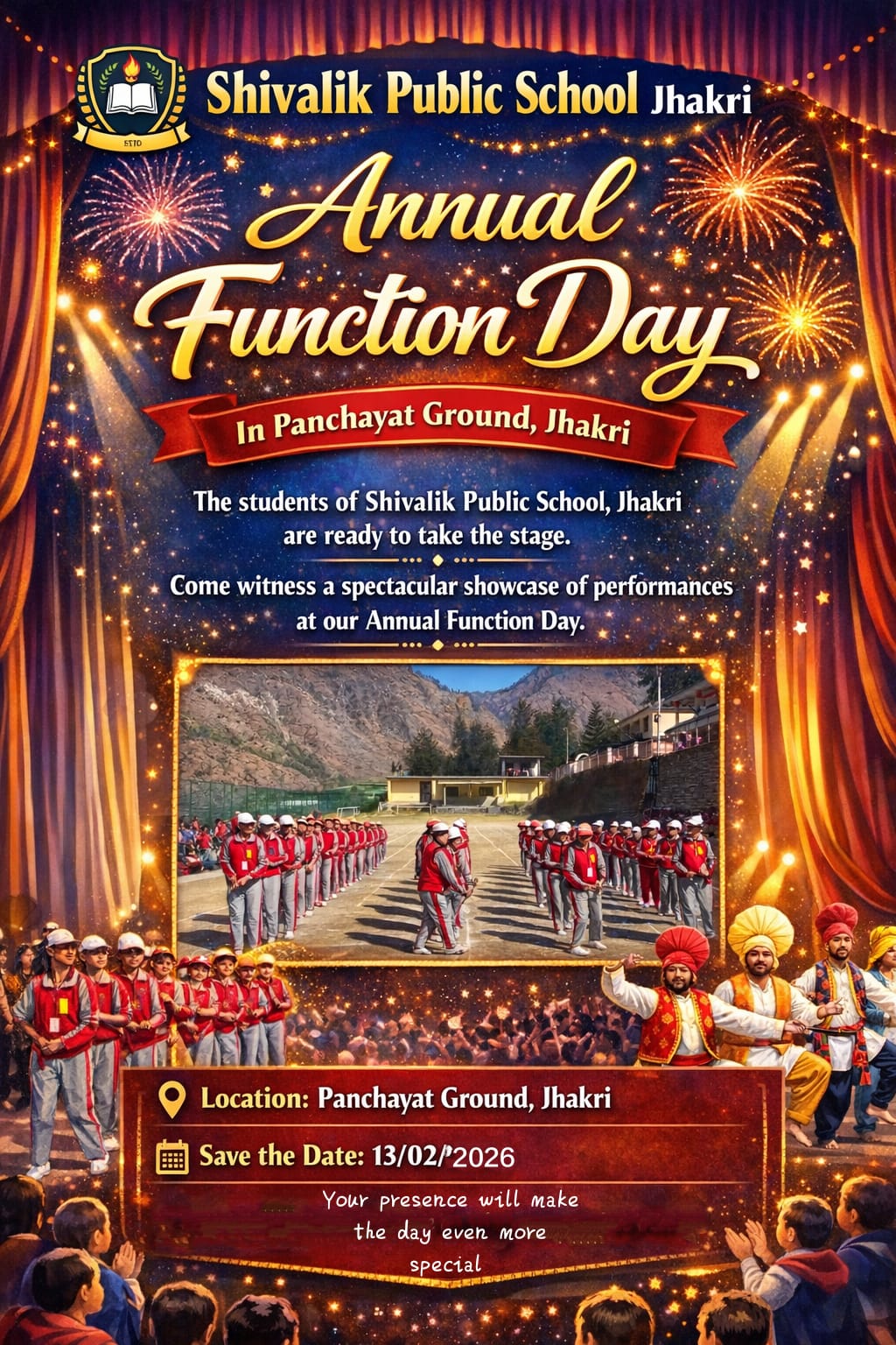 शिवालिक पब्लिक स्कूल झाकड़ी का वार्षिक पुरस्कार वितरण समारोह कल छात्र सम्मान और रंगारंग सांस्कृतिक कार्यक्रम के साथ मनाया जाएगा समारोह झाकड़ी: शिवालिक पब्लिक स्कूल, झाकड़ी का वार्षिक पुरस्कार वितरण समारोह शुक्रवार, 13 फरवरी को पंचायत ग्राउंड में सुबह 10 बजे से बड़े हर्षोल्लास के साथ आयोजित किया जाएगा। इस गरिमामय अवसर पर मुख्य अतिथि के रूप में बलवंत सिंह कश्यप, उप प्रबंधक, एसजेवीएन लिमिटेड, शिमला उपस्थित रहेंगे। विशिष्ट अतिथि के रूप में विनोद नेगी, कनिष्ठ अधिकारी, मानव संसाधन, एनजेएचपीएस झाकड़ी और सुरेंद्र कौशल, समाजसेवी एवं सलाहकार, जागृति नव युवक मंडल झाकड़ी, इस समारोह में शिरकत करेंगे। विद्यालय प्रबंध निदेशक बिशना भंडारी ने बताया कि इस अवसर पर शैक्षणिक और खेलकूद गतिविधियों में उत्कृष्ट प्रदर्शन करने वाले विद्यार्थियों को सम्मानित किया जाएगा, साथ ही छात्र-छात्राओं द्वारा रंगारंग सांस्कृतिक कार्यक्रम भी प्रस्तुत किए जाएंगे।