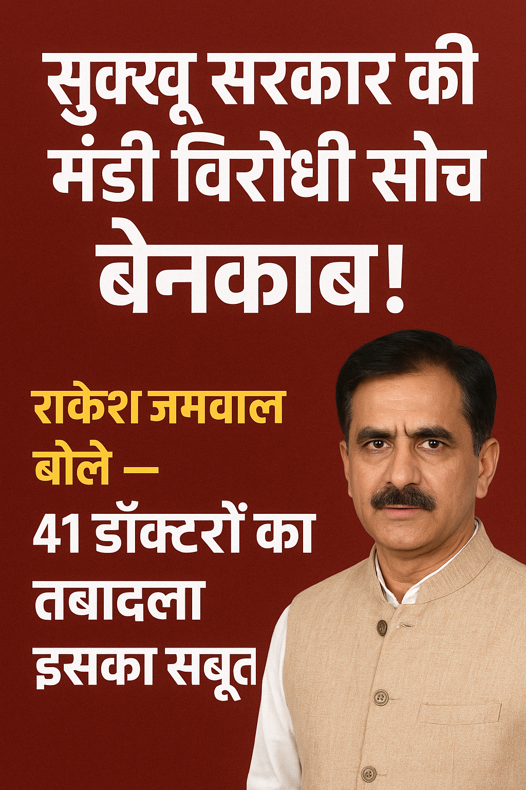 एकमुश्त 41 डॉक्टरों का तबादला मुख्यमंत्री सुखु की मंडी विरोधी मानसिकता का खुला प्रमाण : राकेश जमवाल